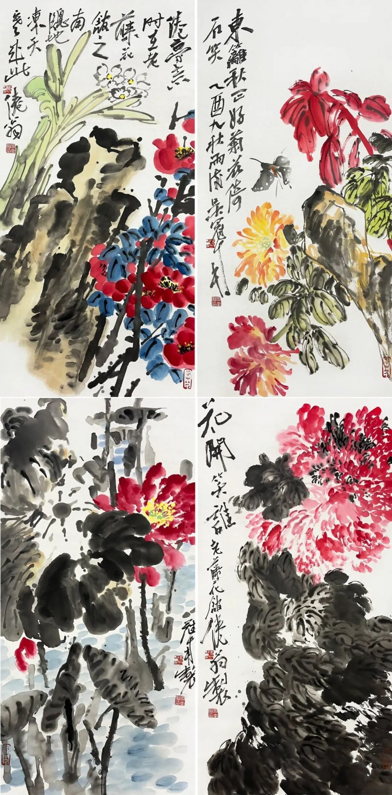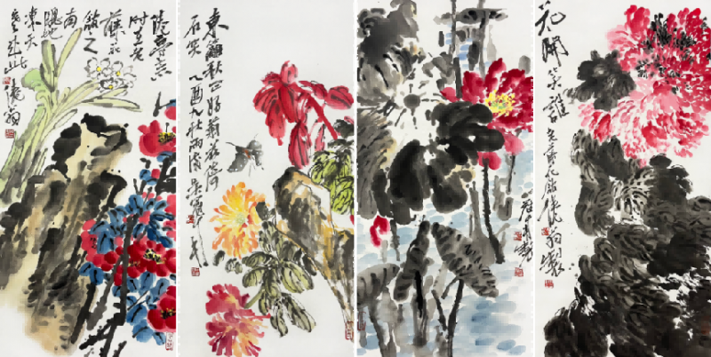 吴冠南 花卉四条屏 100×50cm*4