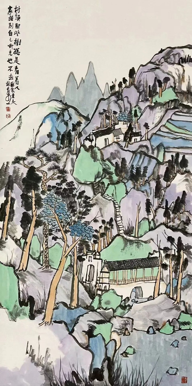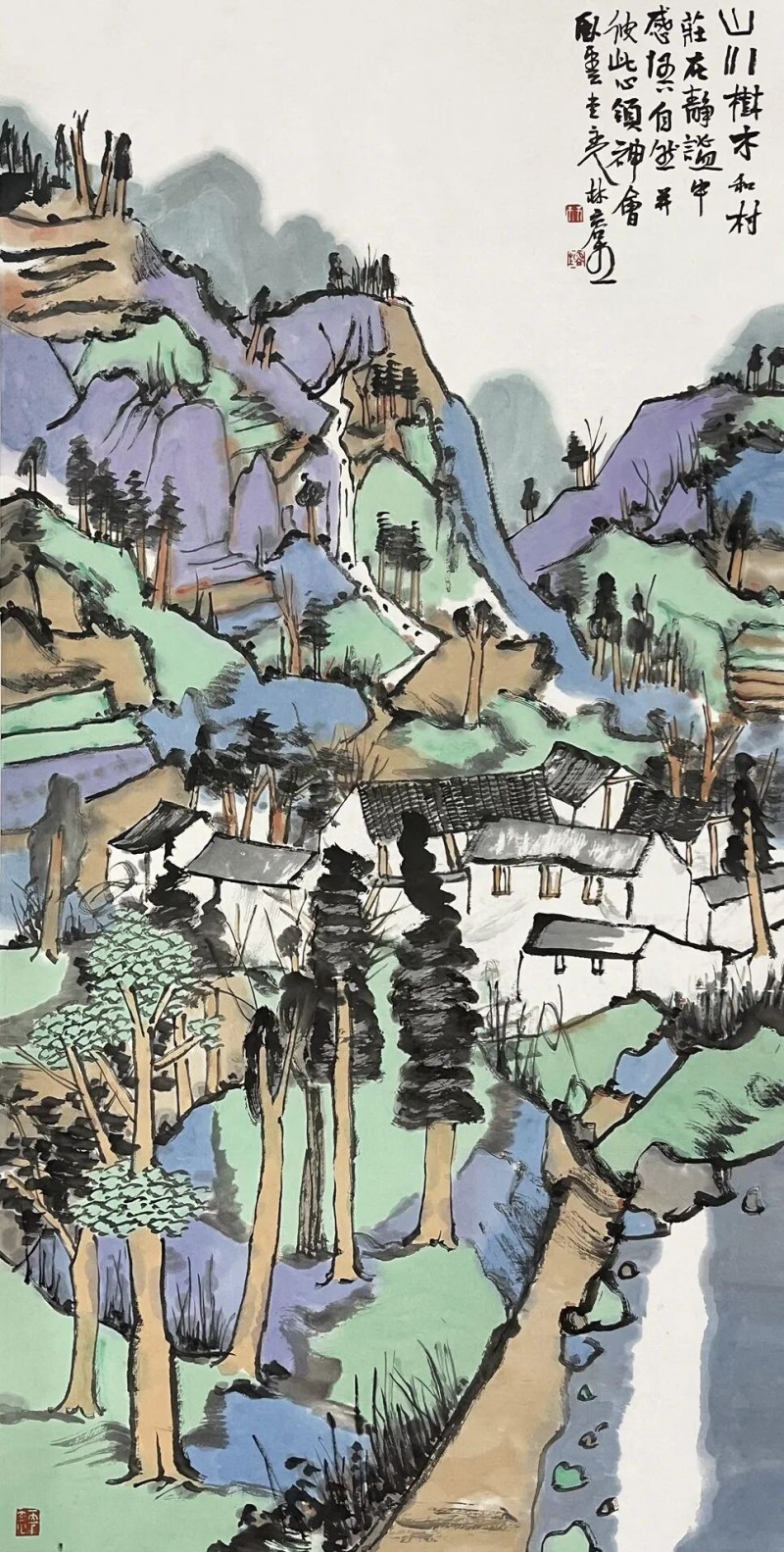 林容生 山村小景 136×68cm