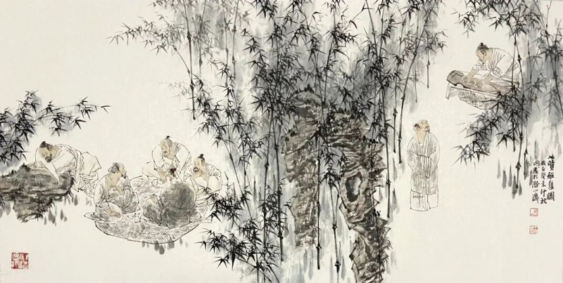 王明明 七贤雅集图 136×68cm