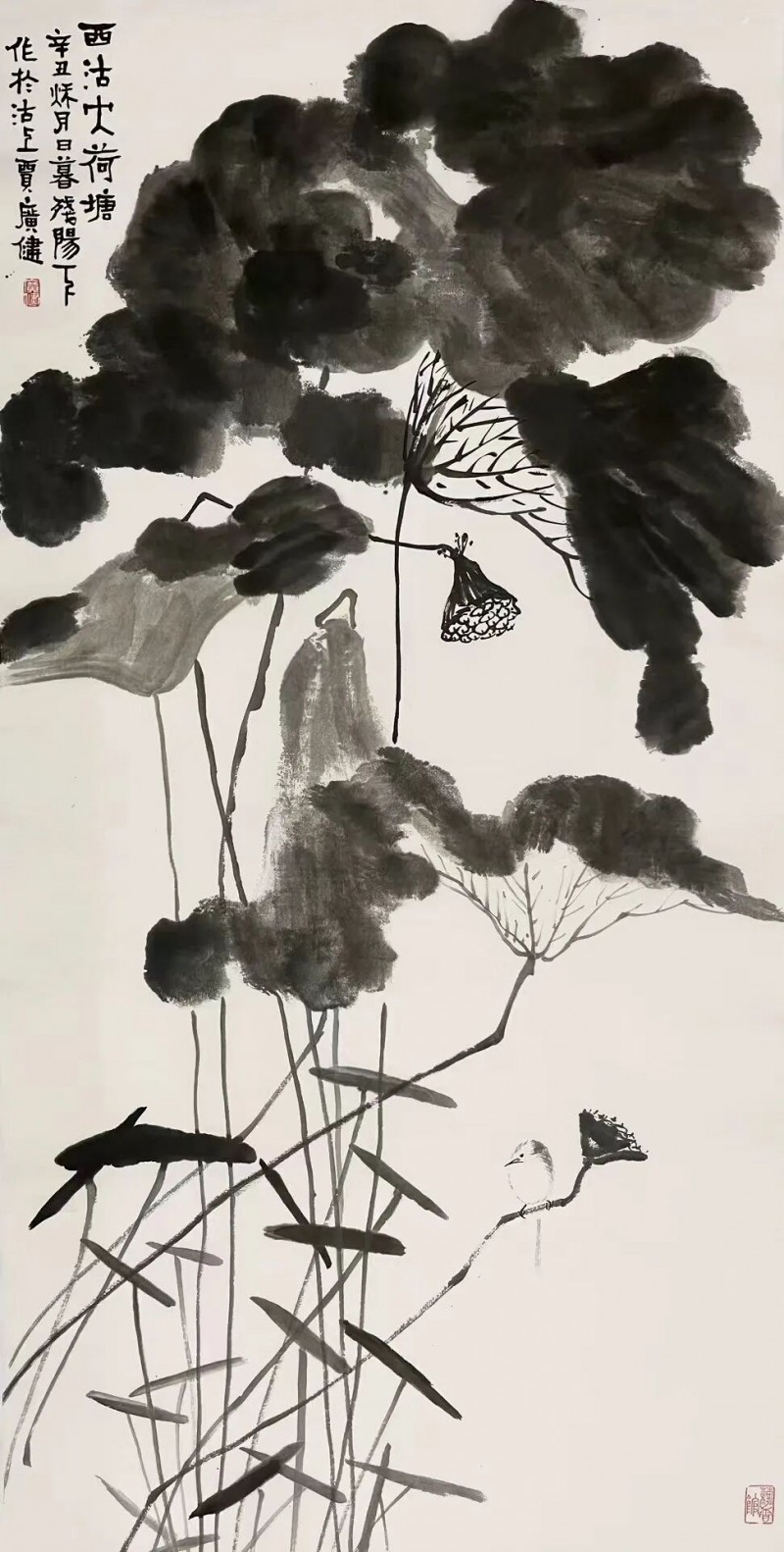 贾广健 西沽大荷塘之秋 136×68cm