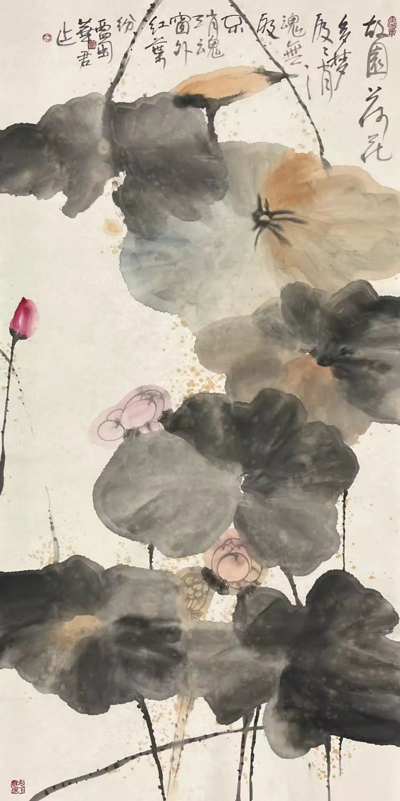 周华君 故园荷花 136×68cm