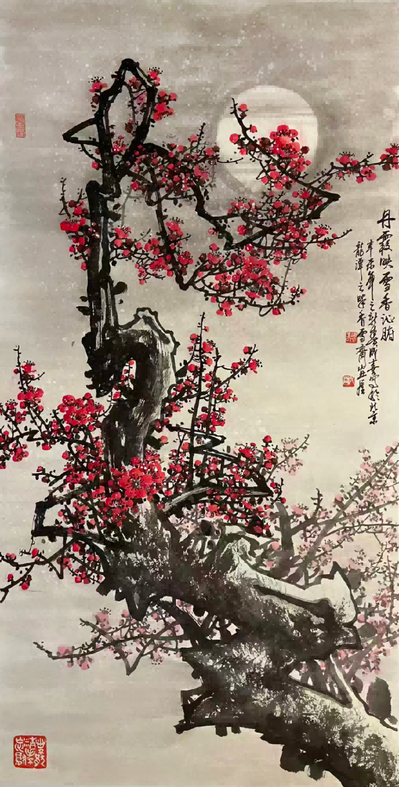 王成喜 丹霞映雪香沁腑 136×68cm