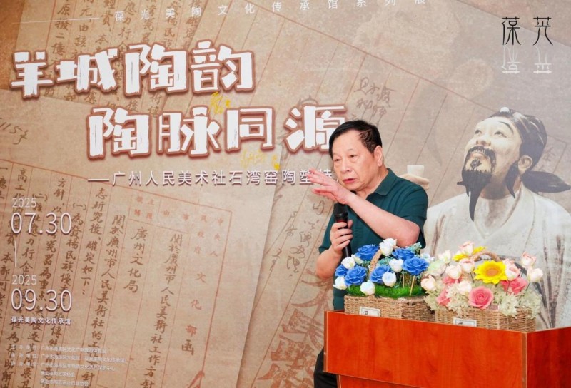 广东省陶瓷艺术大师、刘传之子刘桂芳在发言中,从历史传承的角度回顾了父亲刘传大师在新中国成立初期应广州市长朱光之邀,主持创办广州人民美术社陶瓷雕刻工场的历史片段。他指出,该工场作为石湾陶塑由民间工艺迈向现代艺术体系的重要平台,汇聚了刘传、庄稼、廖洪标等一批卓越陶艺人才,不仅保障了作品质量,也为技艺的系统传承与推广奠定了基础。刘桂芳衷心感谢众多藏家热情支持此次征集工作,提供珍贵展品,使本次展览得以完整呈现20世纪中期石湾陶艺的艺术风貌。他强调,石湾陶塑的辉煌成就不仅是个体艺术家的荣誉,更是岭南陶艺界乃至中国现代陶瓷艺术的集体记忆与文化荣耀。
