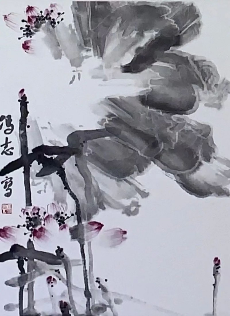 水融翰墨生雅趣,笔写春秋见妙境。从教从艺40年,勤奋而执着的画家冯志虽历经平凡,但也勤耕翰墨且创作颇丰。1996年在南京参加全国首届中小学教师技能比赛荣获中学组一等奖;1997年再获国家教委表彰的“全国优秀美术教师”称号。2000年后他分别师从吴绪经、邹文正老师学习工笔人物和水墨山水花鸟二十余年,近十余年沉浸在水墨花鸟的研究中,擅长水墨荷花、梅花题材。人物画作品 《三月风》 《丰碑》《春风吹进大凉山》《都市新民》《回忘》等在国家、省、市级参展并获奖。2018年5月,四川电视台科教频道“书画天府”对其从教从艺三十年的艺术人生做过全面的专题报道。他的作品题材广泛,内容丰富,从人物到花鸟,从工笔重彩到水墨写意,积淀了深厚的传统书画艺术修养。
