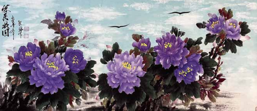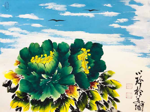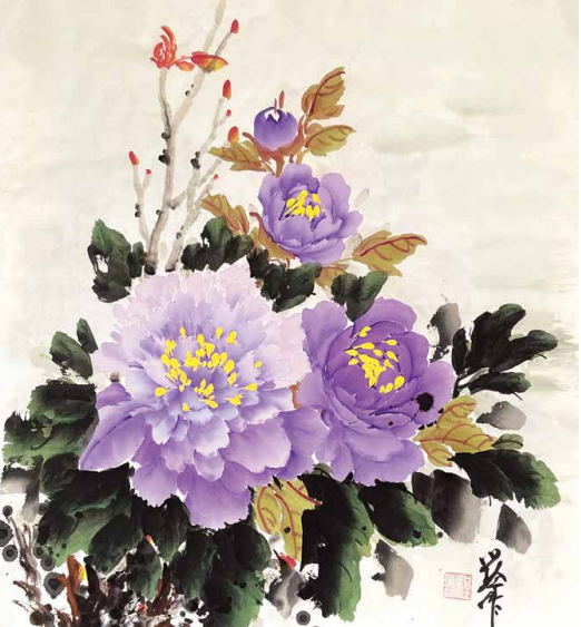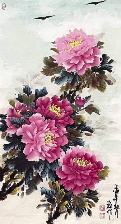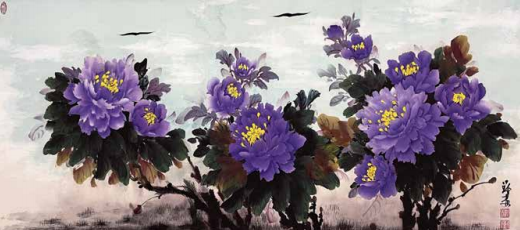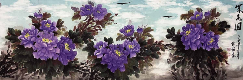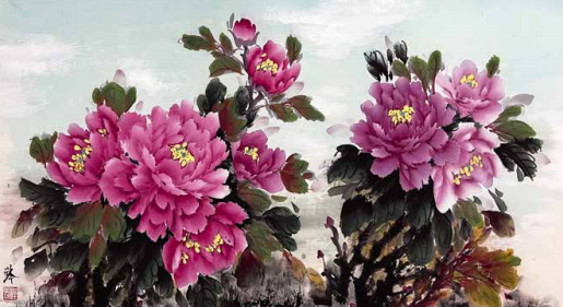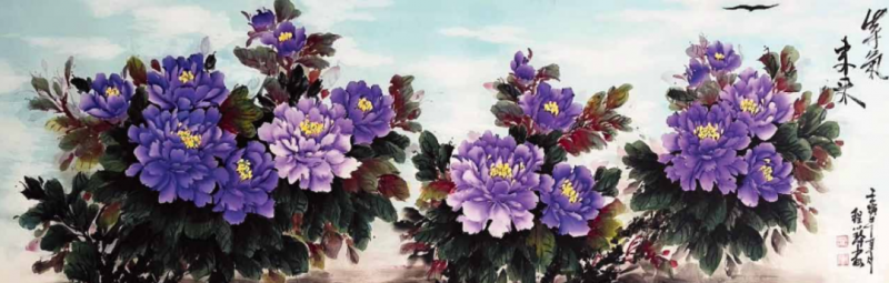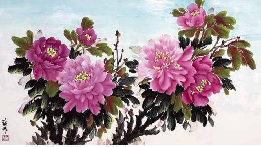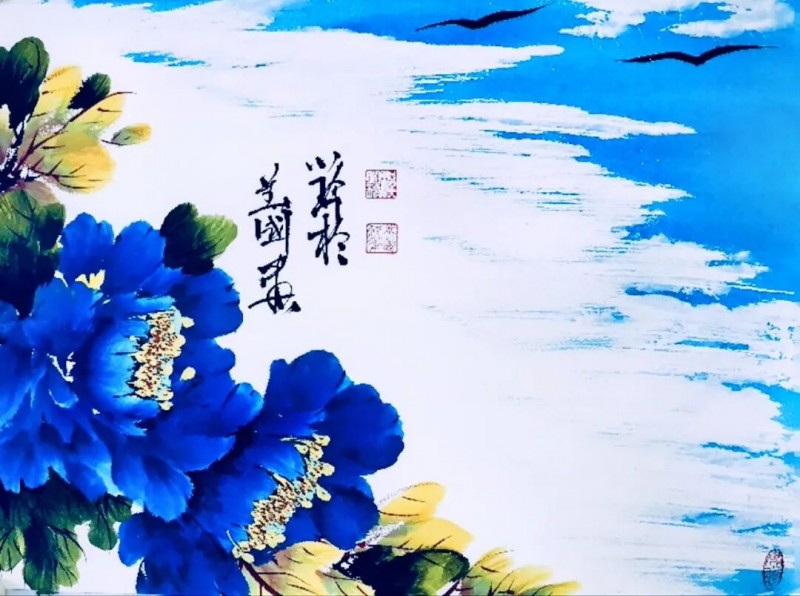 她吸去了宗师王绍华、楷模王绣作品的精华,创作出自己独特的风格——“蓝天下的牡丹花”