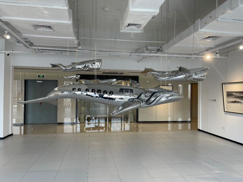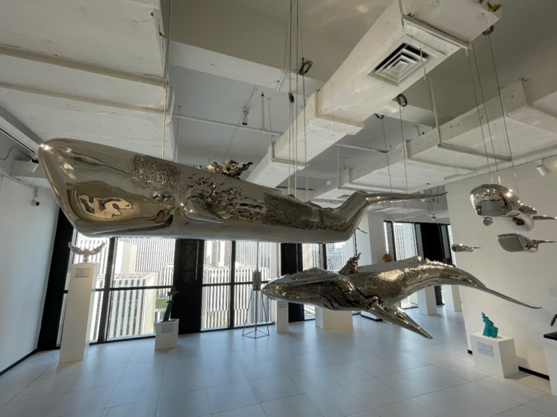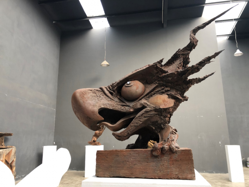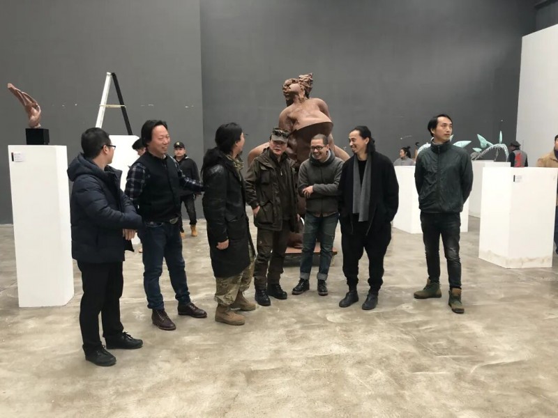 艺术展开幕式现场,参展艺术家们与尊敬的龙老师在一起探讨交流