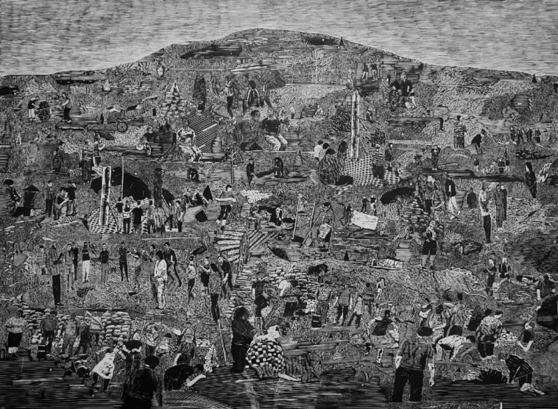 作为80后出生的艺术家,与前几代出生的艺术家生活经历相比要简单很多,田伟是比较幸运的,在2010年顺利的考上了贵州大学艺术学院美术系。当时他们那一届美术系学生有74人,大多数人都选择了油画、国画专业,这两个专业可以用火爆来形容,而版画专业在当时来说还不是很受欢迎,但他去坚决选了版画专业,据说当时开办的专业如果不满16人,将自动取消开班,74人刚开始选择版画专业的不足10人,在他们各种游说后,从不足10人变成了18人,这个班级就顺利开了起来。贵大艺术学院的版画教学设备在全省高校中是比较全面的,正是基于这样一种条件之下,田伟基本上掌握了各种版画技法,有更大的自由空间来完成自己的毕业创作。在大学即将毕业的同时,田伟又被保送为本校版画研究生,这将是他艺术创作的正式开始。