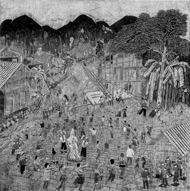 土家·迎宾客+65x91cm+木口木刻+2022年