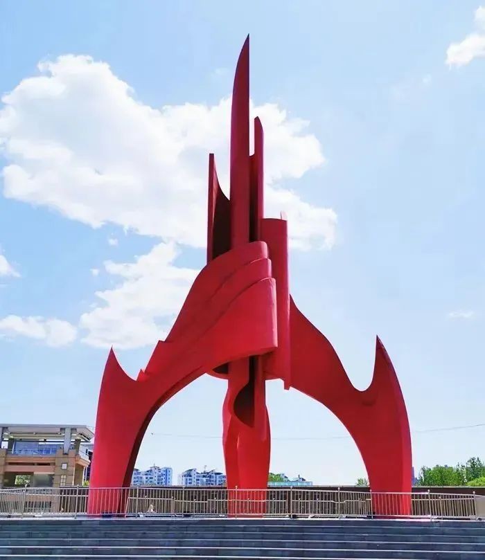 《旭日东升》不锈钢喷漆 10x10x15m 洛阳新安世纪广场 2007年