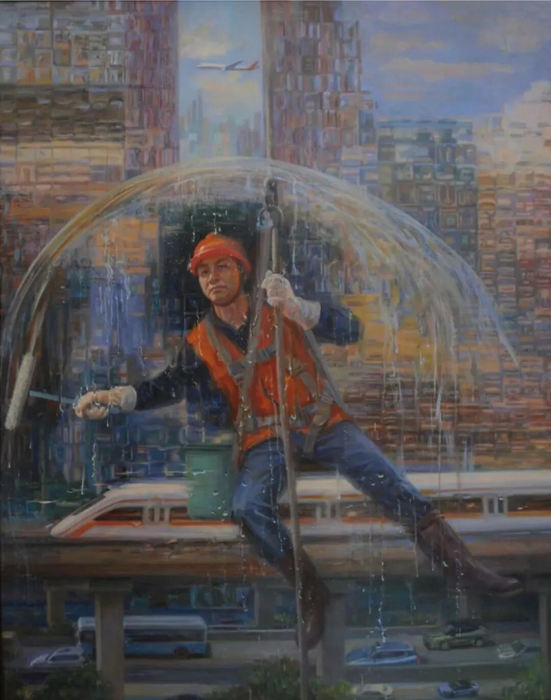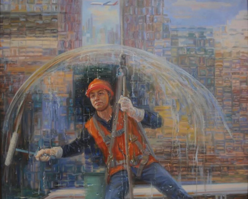 2023年油画《高空清洗-涤醒万像》入选上海美术大展