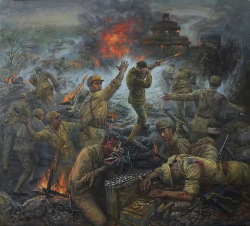 油画《热血——解放上海外围碉堡攻坚战》—— 武汉美术馆收藏