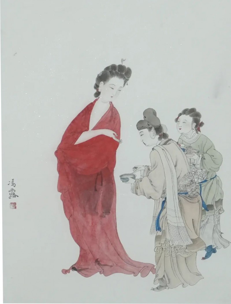 冯露,七零后,四川人,字润卉,紫云阁主人。客居滇中有年,为国家一级美术师郭汝愚先生的入室弟子,擅长工笔花鸟、佛教人物,现为职业画家;四川省美术家协会会员,成都中国画家协会会员,二酉山房画院画师。澳门云南文化交流促进会常务理事,澳门国际女画家协会理事。其作品曾多次参加省市美术展览及个展,《孔雀》被敦煌博物馆收藏。瓷器作品被授予《云南民间工艺美术大师》称号。