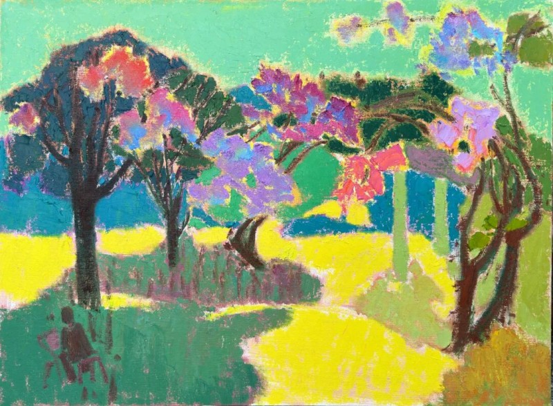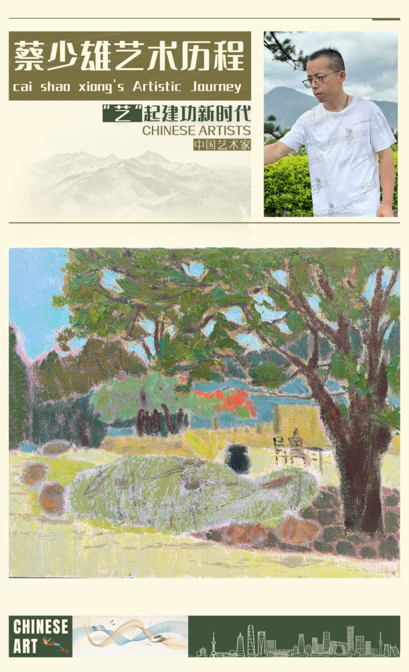 蔡少雄,青年画家,自2019年起跟随赵九杰老师学习至今,对西方色彩和中国传统文化怀有浓厚兴趣。在绘画实践中,逐渐形成了独特的艺术语言,将西方色彩的鲜艳与中国传统文化的深厚底蕴相结合,创造出富有情感和思想深度的作品。对自然和生活的热爱,也反映了对文化传承的敬意。
