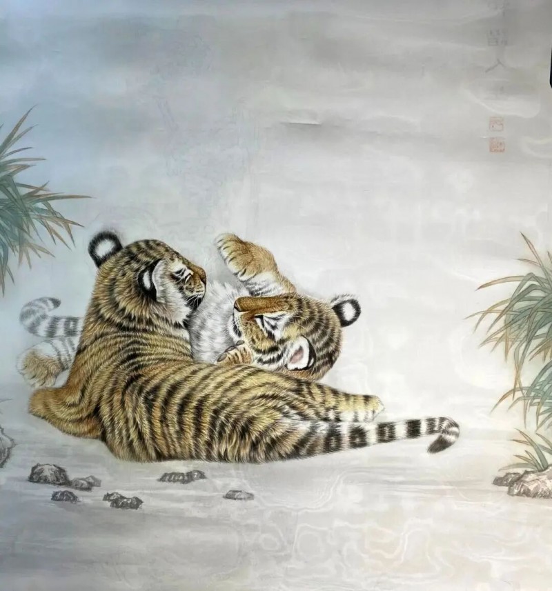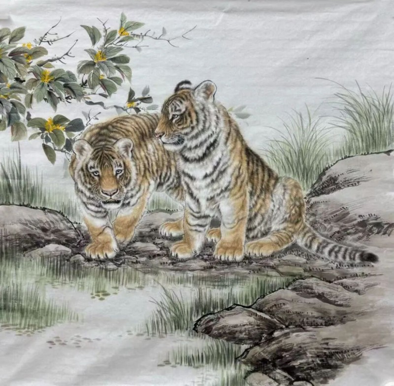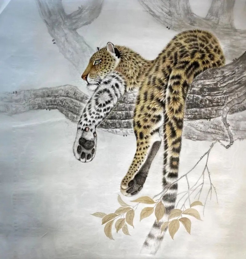 而他的山水画,则以雄浑壮阔的笔触展现出大自然的壮美。他善于运用泼墨泼彩的技法,营造出一种大气磅礴的氛围。山峦起伏,云雾缭绕,溪流潺潺,在他的笔下,山水仿佛有了生命,展现出一种灵动之美。他的山水画不仅是对自然景观的描绘,更是对内心世界的表达,体现了他对大自然的敬畏与热爱。