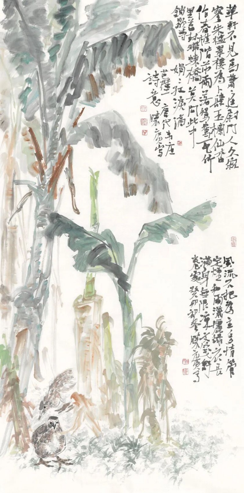 蕉雨多奇彩,山鸟吐清音 138x68cm