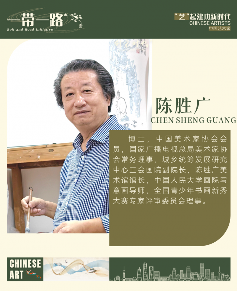 陈胜广,博士,中国美术家协会会员,国家广播电视总局美术家协会常务理事,城乡统筹发展研究中心工会画院副院长,陈胜广美术馆馆长,中国人民大学画院写意画导师,全国青少年书画新秀大赛专家评审委员会理事。从事中国画研究与创新,能诗文、擅书法、通画理。