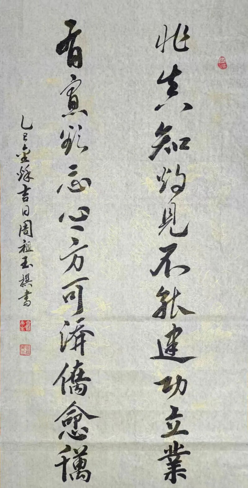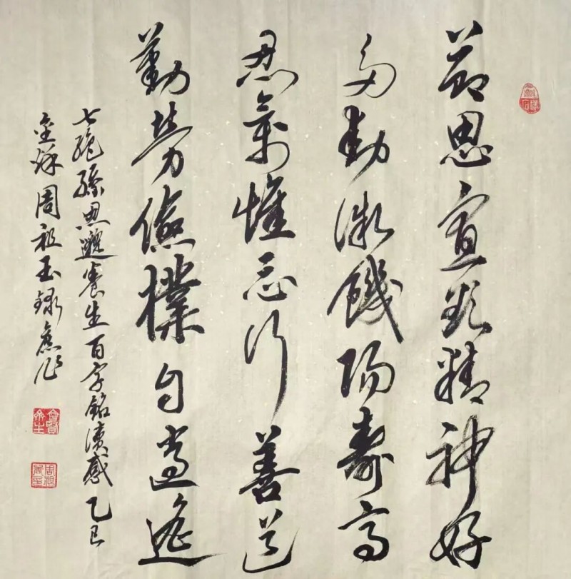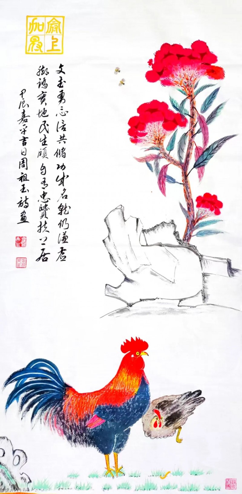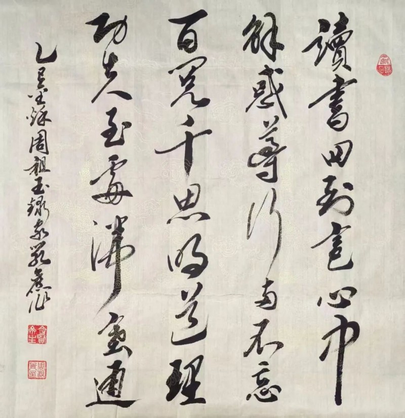 周祖玉是1985年拜师黄怀清教授学习国画的,培训结业时,他的《老山雄鹰》被评为优秀奖。由于军务和杂务缠身,直至40年后才重拾画笔。但他染指后,就心无旁骛,废寝忘食。通过半年多的努力,他集诗书画一体的《椿萱耄耋图》《大吉大利》等作品,一炮而红。尤其悉心创作的《紫气东来》小写意国画,荣获法国“莫奈国际艺术奖”金奖,充分体现了他在文学艺术等方面深厚的知识积淀和作品在艺术上的极高价值。
