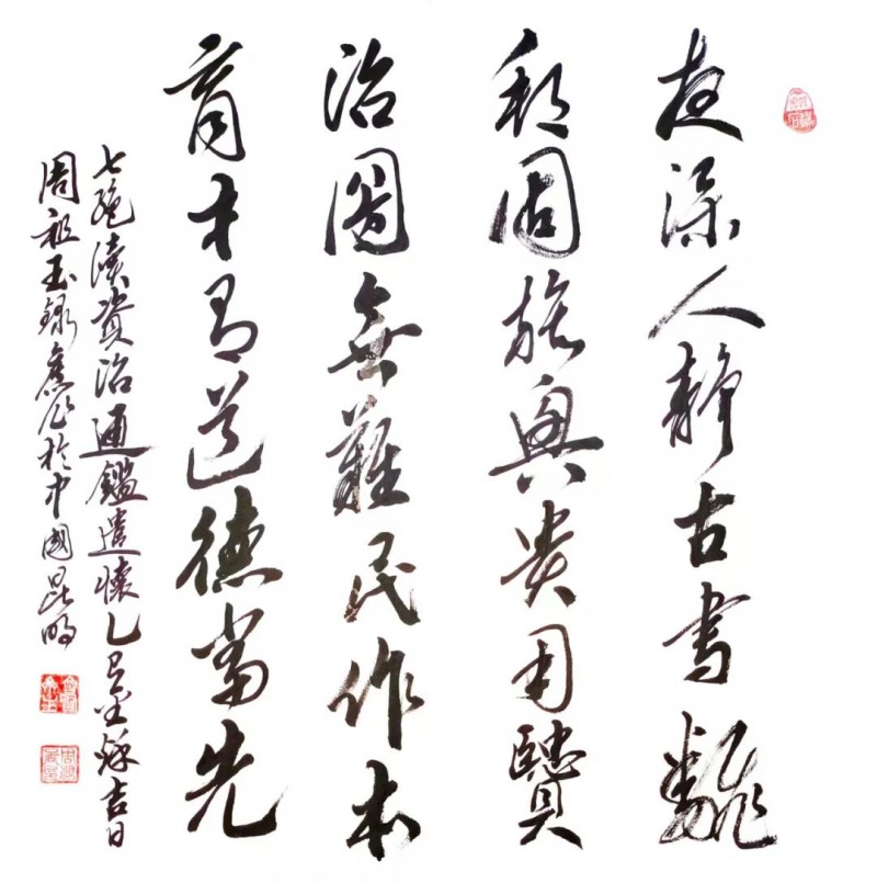 2024年为申报美国科罗拉多工业大学荣誉博士学位而创作的《国画·清廉图》等作品,其诗书画艺术水平又上了崭新台阶。