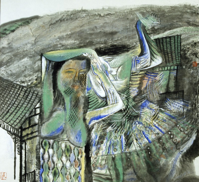 《山妹子》 135cmx150cm 1994年 获首届加拿大枫叶奖书画大展银奖
