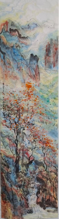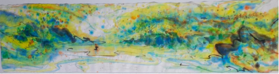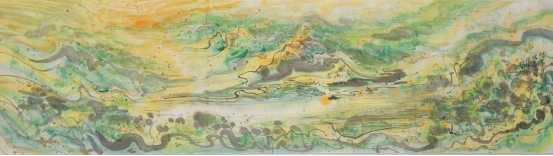 “新柯罗主义绘画艺术”以中西文化核心和谐融合为创作源泉,对多维文化符号进行抽取和重组,通过自然景色的意象来体现,关注人类命运共同体。在他的彩墨画作品中,常常蕴含着对人类与自然、人与人、不同文化之间关系的思考。他通过描绘自然的和谐与美好,呼吁人们保护自然环境,实现人与自然的和谐共生;通过展现不同文化元素在画面中的融合,表达了对多元文化相互尊重、相互包容、共同发展的愿景,体现了新时代全球视野下对人类命运共同体的关注。