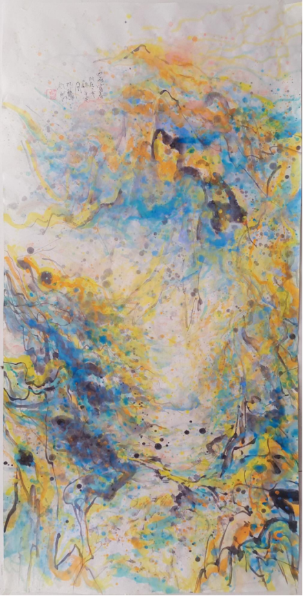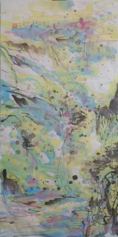 很明显武根柱先生的美术创作不仅仅局限于中国传统绘画的范畴,他着眼于全球艺术舞台,画作融合了中西方的艺术精髓,既保留了中国传统文人画的意境与气韵,又吸收了西方现代艺术的抽象表现手法,所为泼彩技法与西方抽象表现主义有着异曲同工之妙,但在精神内核上却深深扎根于中国传统文化。这种独特的艺术语言,为当代艺术的发展提供了新的思路与方向,尤其是在全球化背景下,如何保持本土文化的独特性,同时又能够与世界艺术潮流对话,武根柱先生的作品无疑提供了一个成功的范例。成功的跨文化的艺术表达生态,使得他的作品在国际层面屡获好评,成为连接东西方艺术的桥梁。