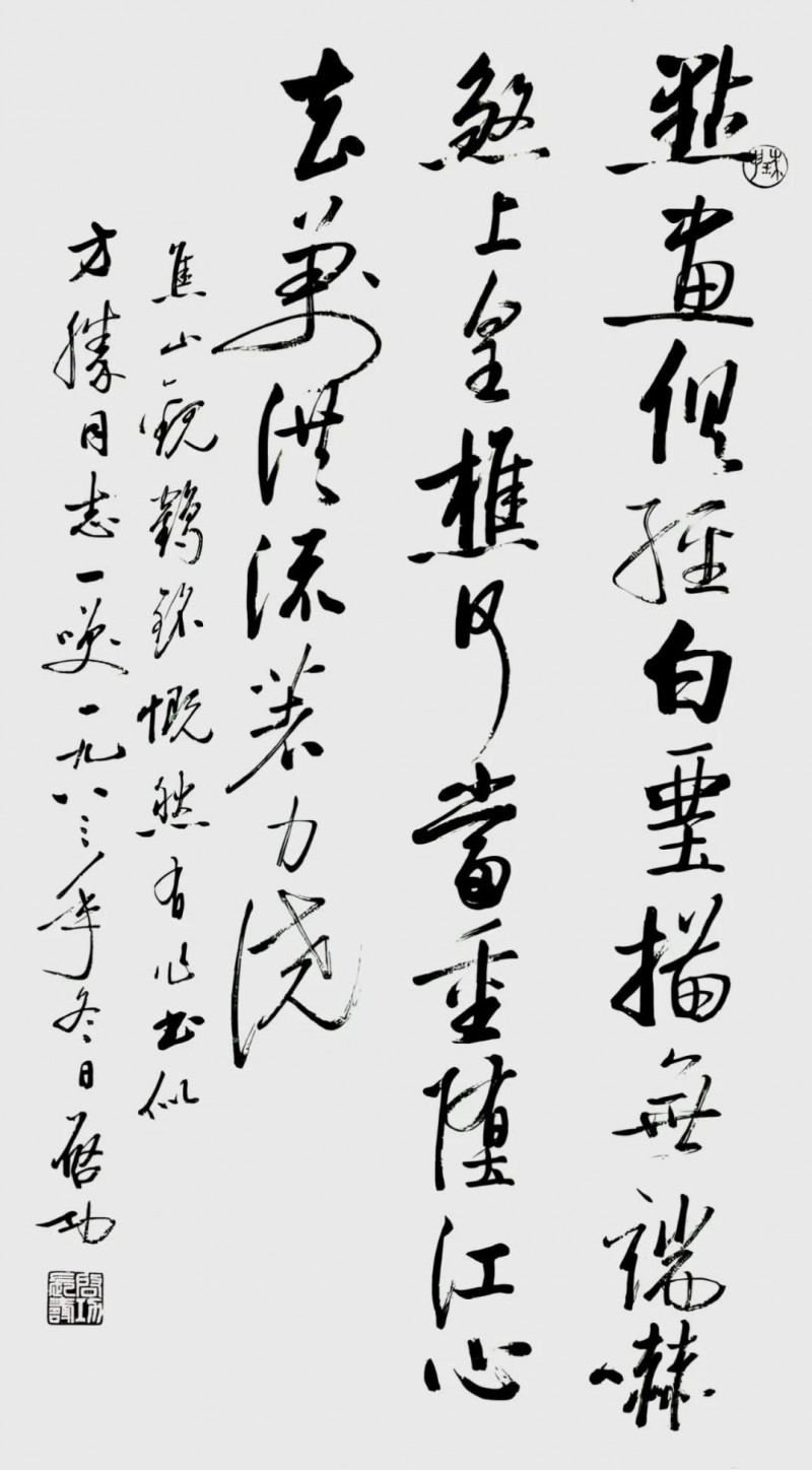六十载临池不辍,让方胜的笔墨早已超越技巧层面,达到 “笔为心画” 的境界。他的书法作品,或如高山坠石,力透纸背;或如流泉奔涌,一气呵成,既遵循传统法度,又融入个人感悟,展现出 “出新意于法度之中,寄妙理于豪放之外” 的艺术追求。