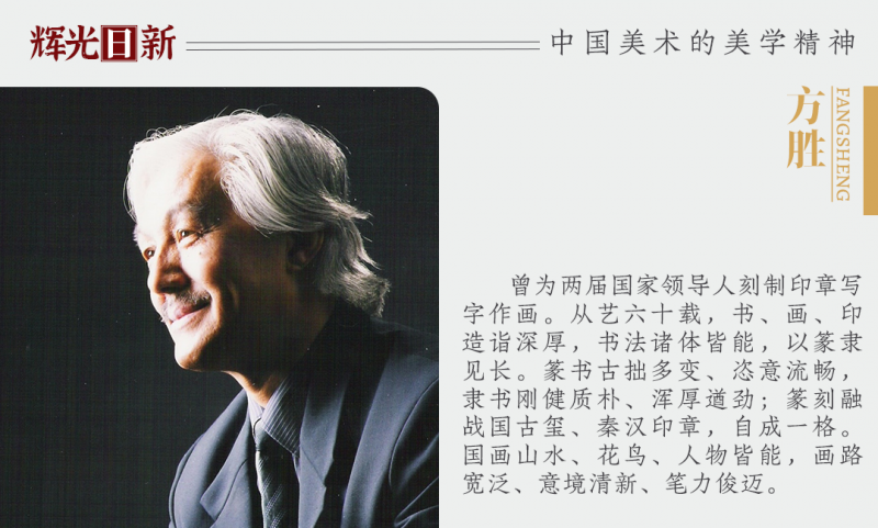 在中国书画篆刻艺术的长河中,能兼擅书、画、印三绝且深耕一甲子者寥寥。国家一级美术师方胜,以 “五台印翁” 为号,携清华美院的学术积淀与六十载的艺术修行,在篆隶的笔墨间刻下岁月沉香,在方寸印石上铸就时代气象,成为当代艺坛兼具传统厚度与创新精神的标杆人物。