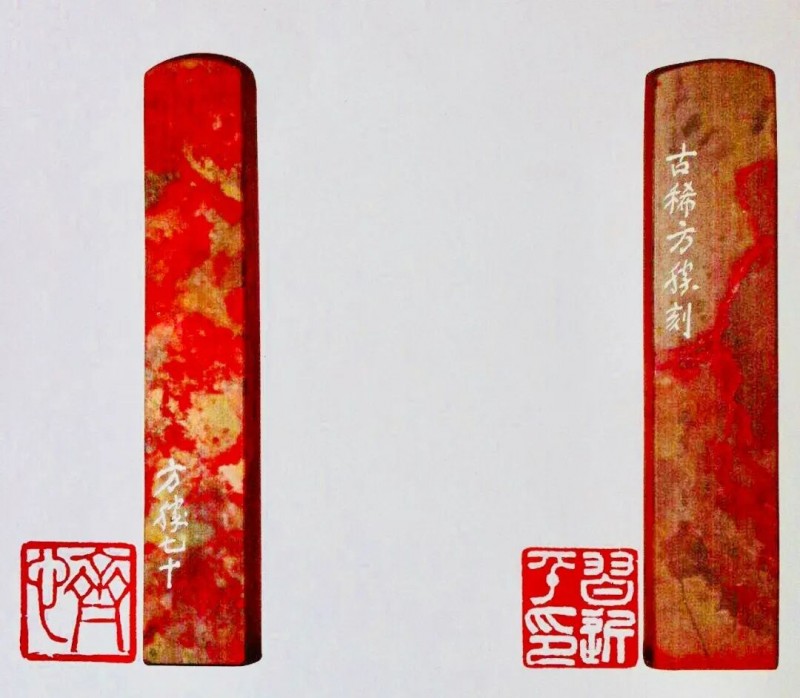 篆刻是方胜艺术成就的另一高峰。他深耕战国古玺的奇崛与秦汉印章的庄重,不泥古、不逐新,在方寸之间开辟出属于自己的艺术天地。其治印注重 “字法、章法、刀法” 的和谐统一,篆字排布疏密有致,构图开合有度,刀法刚柔并济,既能再现古玺的朴拙天趣,又能彰显时代的审美意趣。