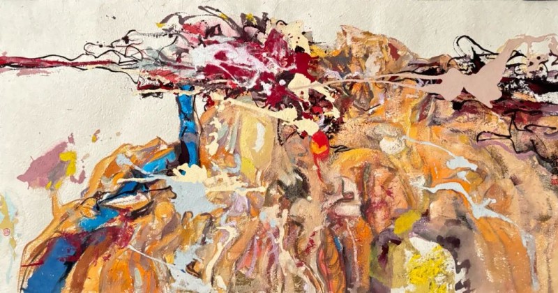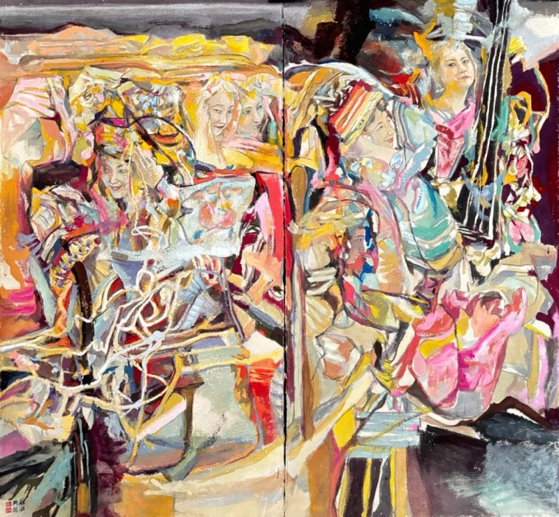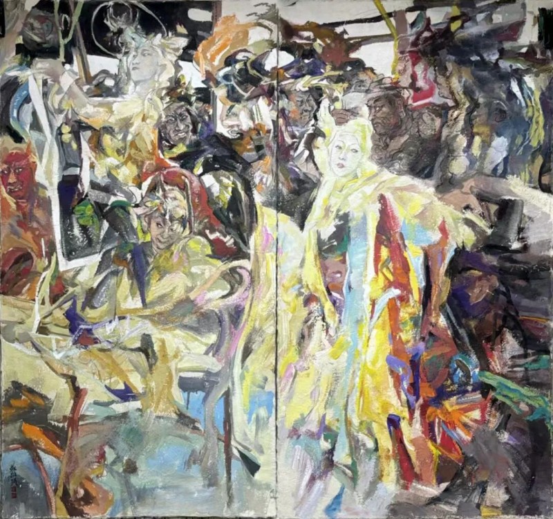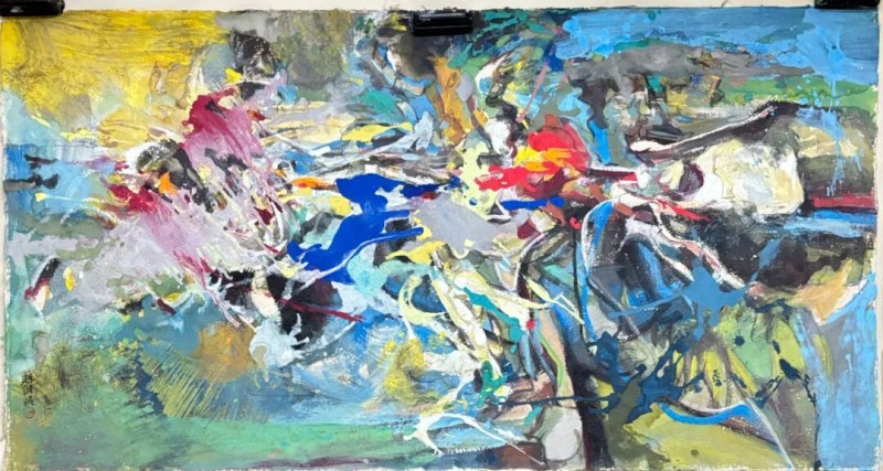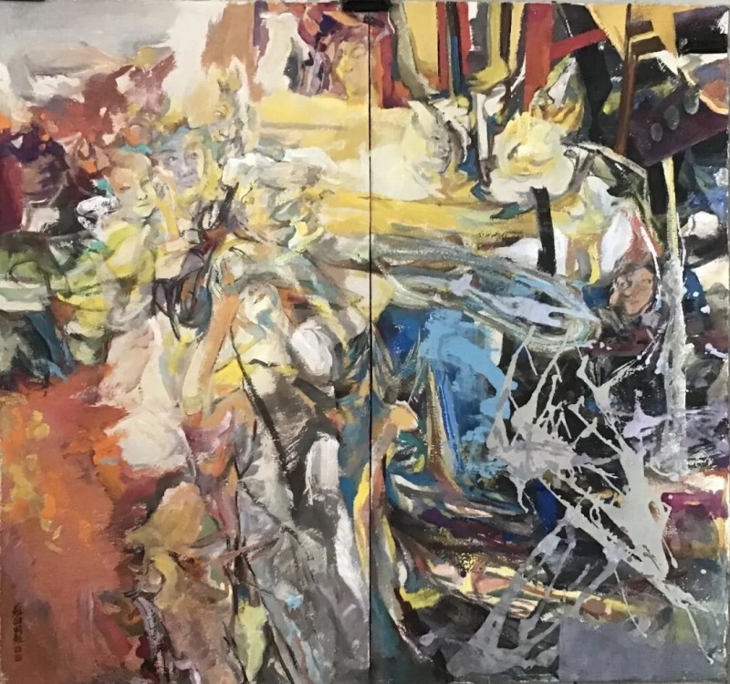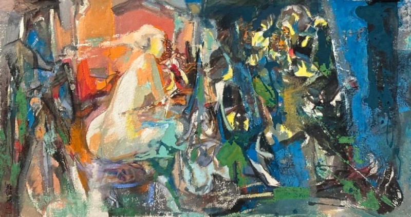 不仅如此,苏维贤在尝试将传统、现代,东方、西方,笔墨、色彩,叙事、形式的共贯融合,因此我们能在这些新作中看到很多未曾完全咀嚼消化的残片,甚至是缠斗的斑驳陆离的场景,似曾相识,然已莫能辨其渊源。纵览这批新作,能看到苏维贤在实验共贯融合的丰富性,他会在不同的画面上尝试新感受,在恣意中感受直觉性的存在。事实上,没有脱离控制的自由意志,苏维贤所有的新作都是对旧作的回顾、梳理、检讨和再创作。尽管这些直觉性的自由表现在过往的艺术生涯中屡有表露,这是其内在性情使然,然而这些新作还是展现出一种自觉的、整体的征候性的新变。不管是近半个世纪艺术生涯积淀的使然,还是对既往创作观念的不满足,乃至是自己对艺术甚至生命的新感悟和新思考,苏维贤都在新作中展现出了他蓬勃艺术生命的创造力和表现力。