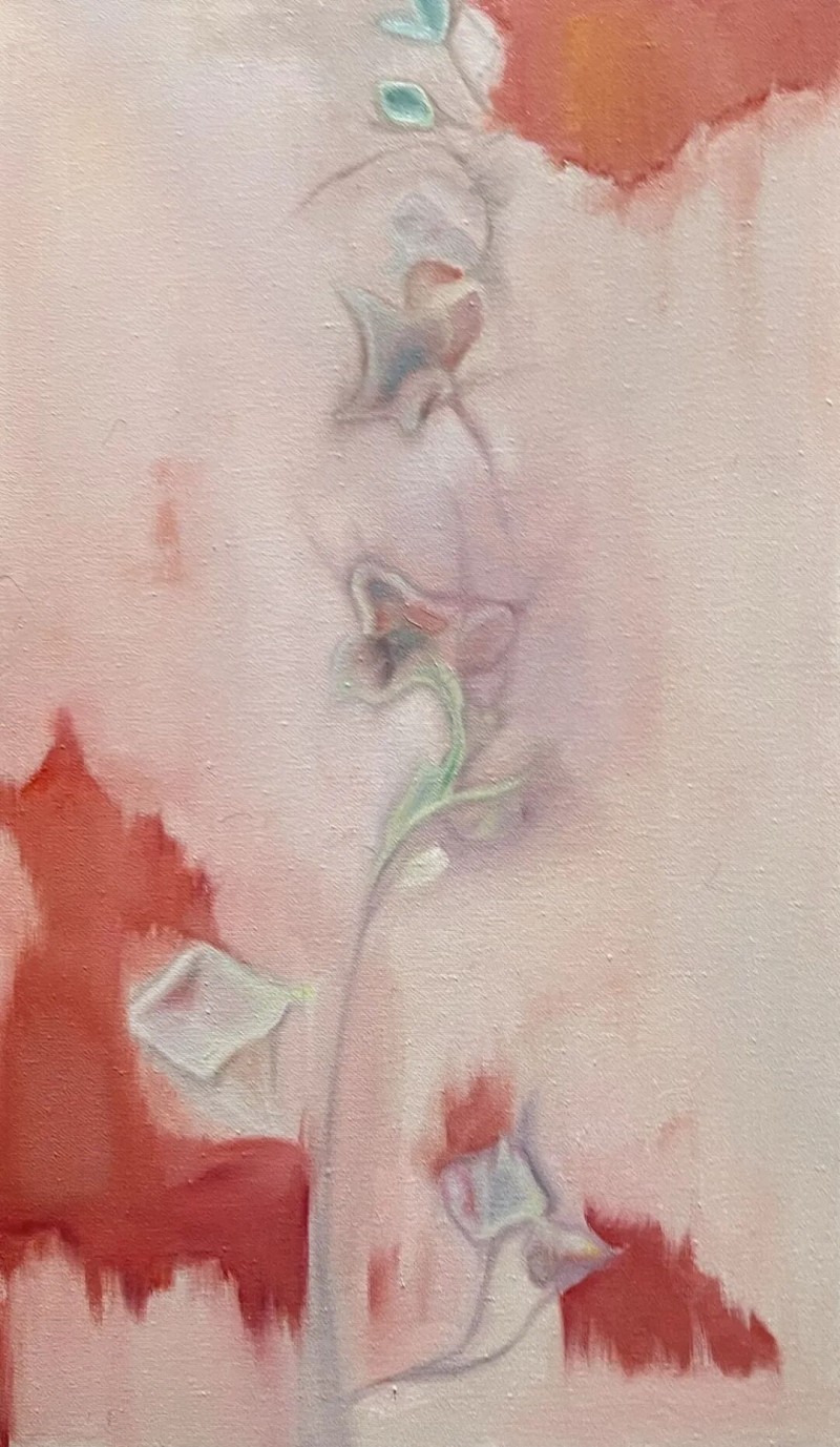 这种独特的艺术风格,使得她的作品兼具观赏性与思想性。以其花卉与女性人物题材创作为例,她并非对物象进行简单再现,而是通过色彩的晕染、造型的重构,赋予画面强烈的情感张力与象征意义。花卉不再是单纯的自然景物,而是承载着生命力量与细腻情绪的符号;女性人物形象也突破了传统表现范式,在超现实的场景衬托下,展现出当代女性的精神世界,这种对题材的深度挖掘,让她的作品超越了视觉美感,更具精神共鸣。