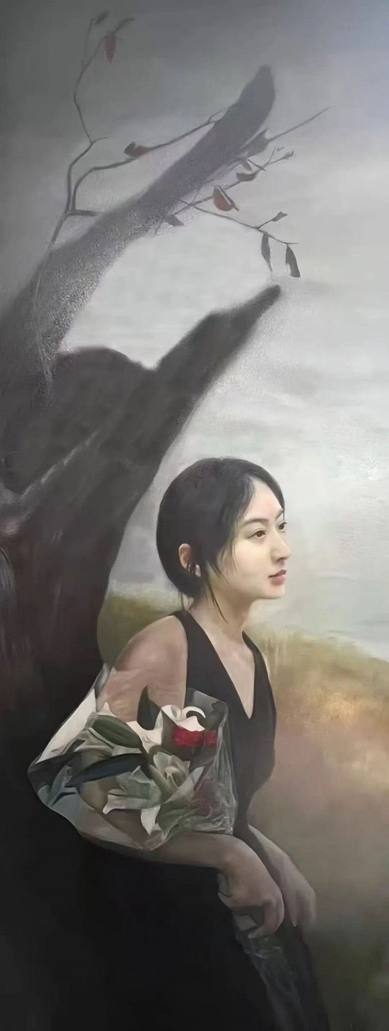 刘冰冰对艺术语言的掌控,展现出超越其年龄的成熟与深度。她并未简单地将东方与西方艺术元素进行表面拼接,而是深入挖掘两者的精神内核,在色彩、构图与意境营造中实现了精妙平衡。在她的创作里,既有东方文人画追求的“气韵生动”,笔触间流露着对自然、生命的细腻感知,墨色般的色彩层次温润而富有质感,仿佛能让人在画面中触摸到传统美学的脉搏;又有西方超现实主义对潜意识与梦境的探索,画面构图打破常规逻辑,却在看似奇幻的场景中传递出更为真实的女性情感与思考,让观者在现实与虚幻的边界中获得全新的审美体验。