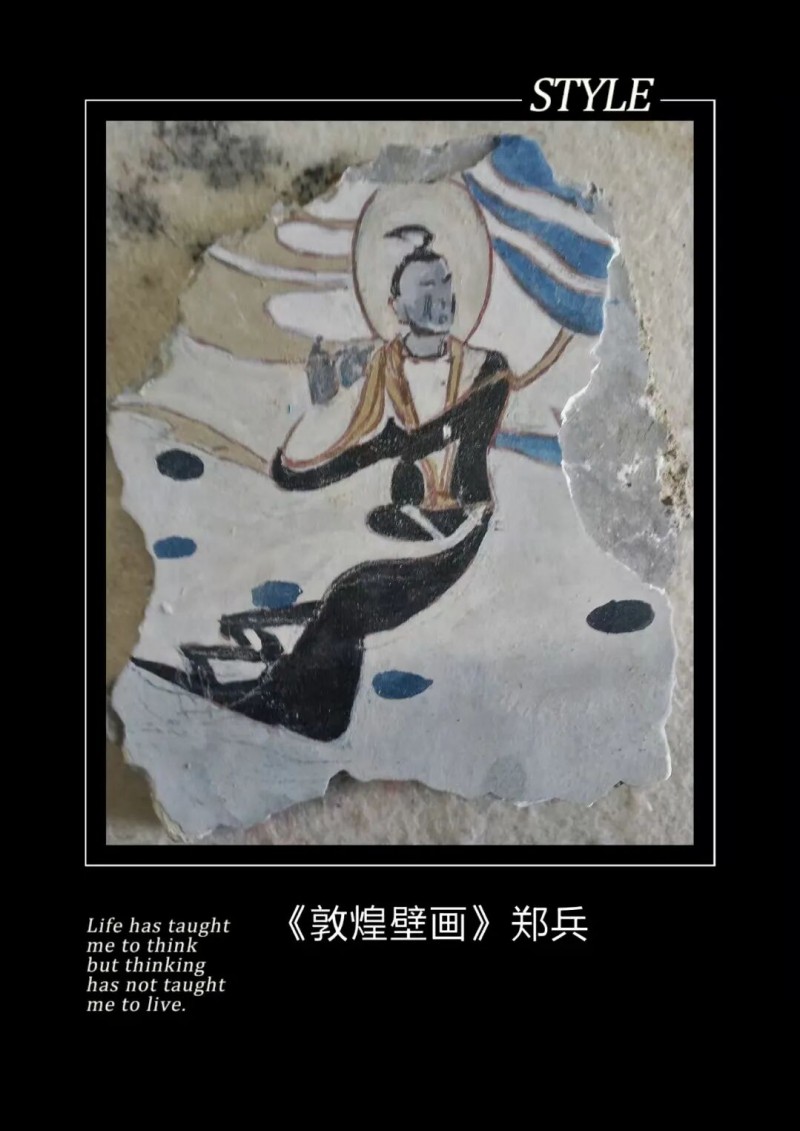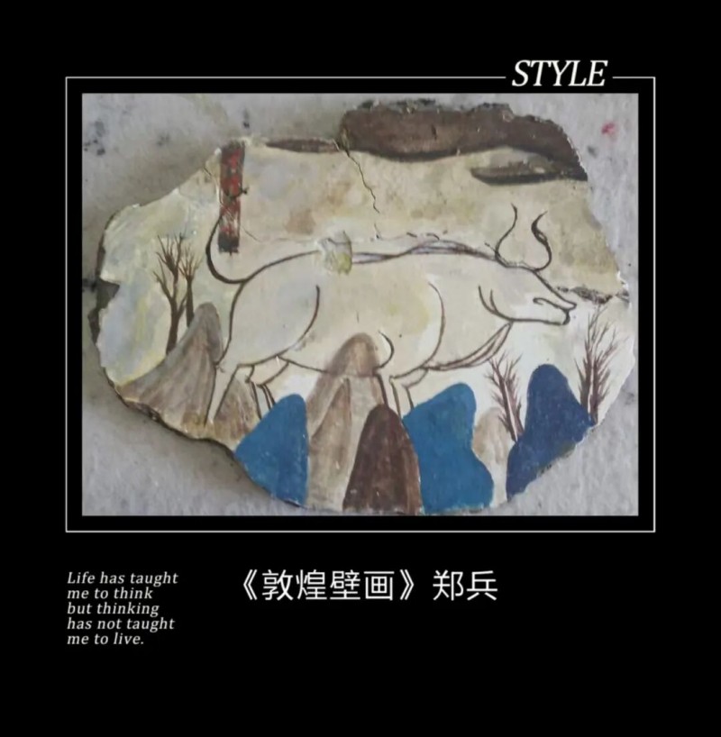 在郑兵的物象世界里,选择石窟壁画作为表达客体,这体现了他对东方文化的认知高度和对民族艺术作追溯探微的愿望,虔诚老实地面对祖先留下的艺术,这是郑兵成功的心得,石窟壁画艺术能给予艺术家的不只是学术的东西,更大成度是对艺术家灵魂世界的震撼;郑兵站在漠风苍野里阅读日出与日落的过程,阅读阳光对于自然天地的必然改造,他寻觅到了一种富有韵味的色调,亢奋里的淡然。他探索出一种沙漠里独有的绘画语言,剔掉‘框景’、‘露景’、‘透景’、‘布景’、‘点景’这些技能。