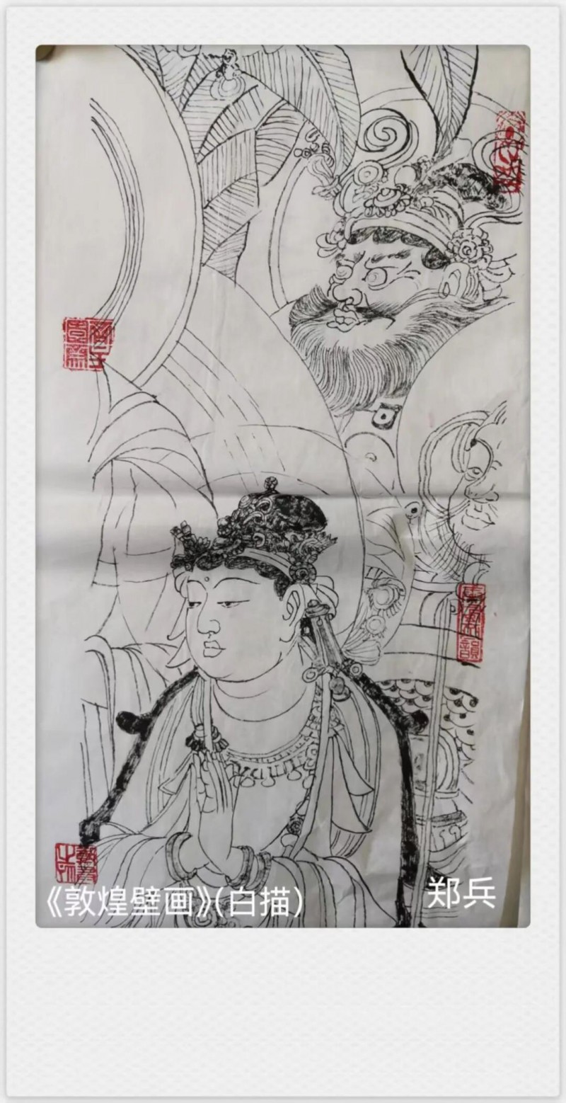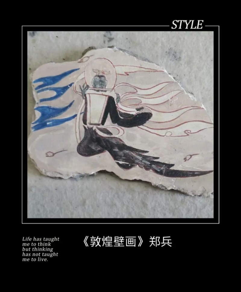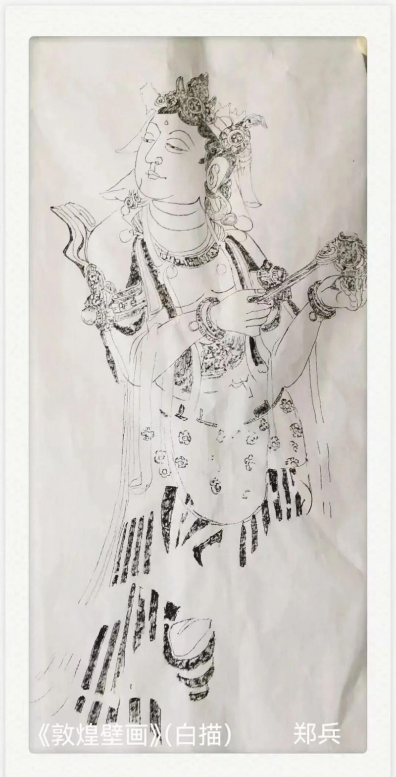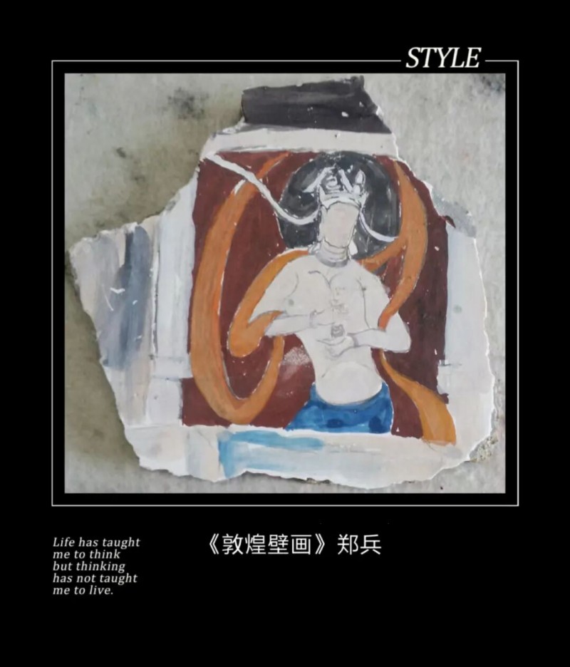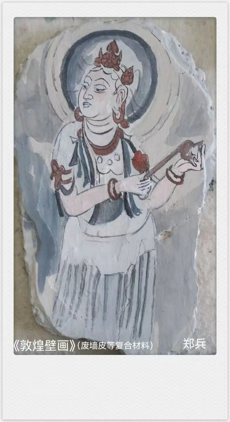 他在敦煌作画,面对祖先们留下的艺术精品体悟着艺术的精髓,他的艺术境界在不自觉间纯清如水,纯静成空气。有一国家级学术刊物责编看到《解读》一画时曾经提出要把此作品向海外介绍推出,他说再改一改,这一改就是好几年。郑兵为自已选择了一条苟刻自身走向成功的道路。这是不流俗的,是不与画坛世风相混淆的。我认为:不只是画人,所有门类艺术家的成功必须是从踏实、肯吃苦开始,都必须从做老实人开始。不具备这种活人操守的任何变法,都是浮躁轻浅的,不具备这种德性的任何理论,都只是嚼舌。