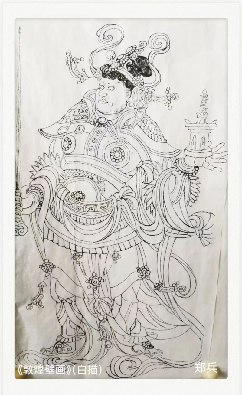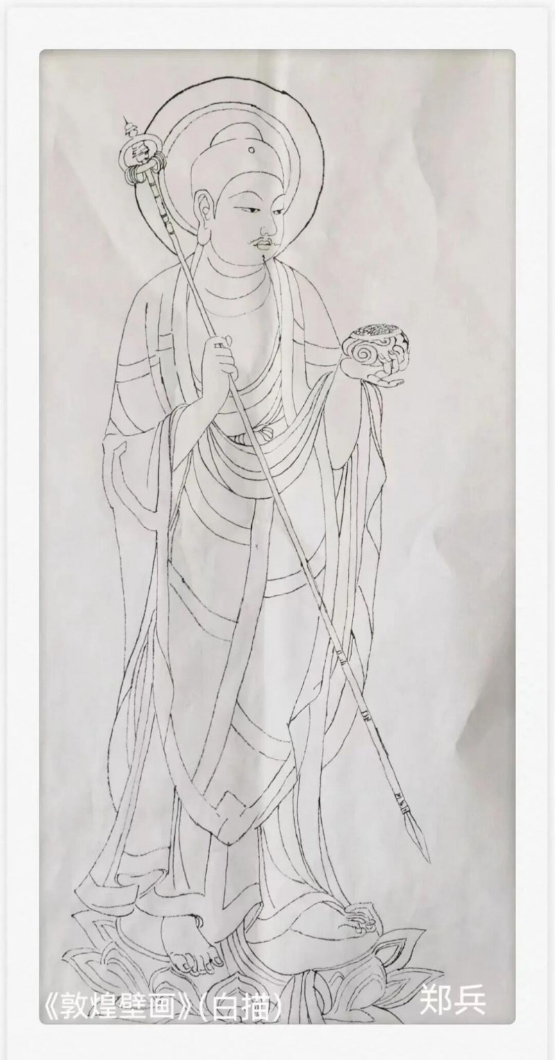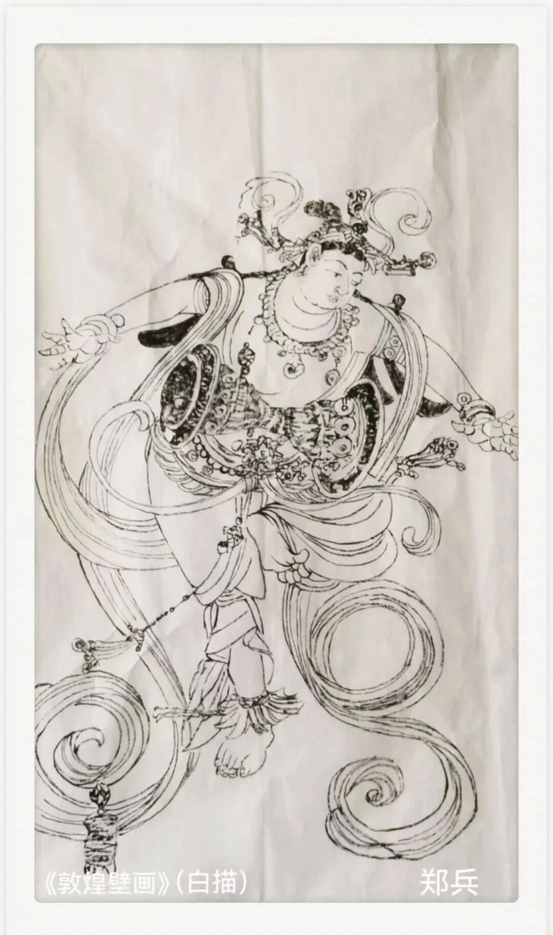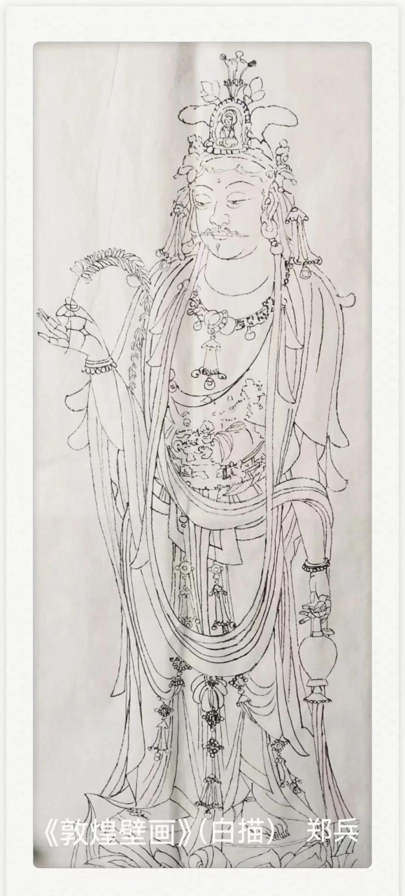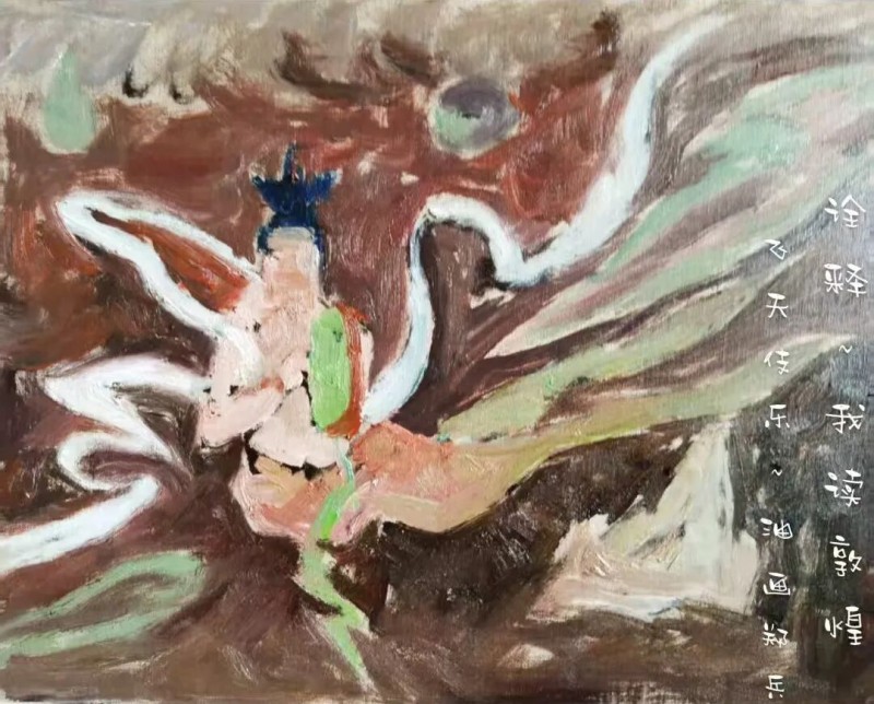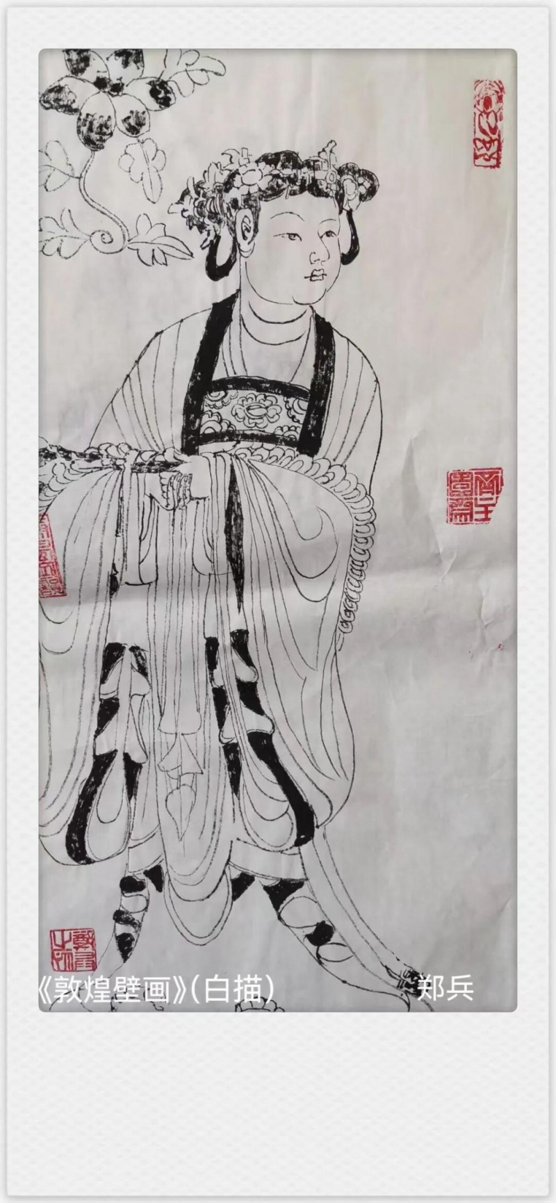 他在敦煌作画,面对祖先们留下的艺术精品体悟着艺术的精髓,他的艺术境界在不自觉间纯清如水,纯静成空气。有一国家级学术刊物责编看到《解读》一画时曾经提出要把此作品向海外介绍推出,他说再改一改,这一改就是好几年。郑兵为自已选择了一条苟刻自身走向成功的道路。这是不流俗的,是不与画坛世风相混淆的。我认为:不只是画人,所有门类艺术家的成功必须是从踏实、肯吃苦开始,都必须从做老实人开始。不具备这种活人操守的任何变法,都是浮躁轻浅的,不具备这种德性的任何理论,都只是嚼舌。