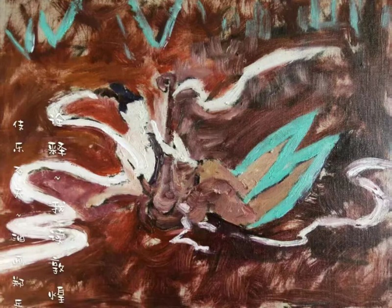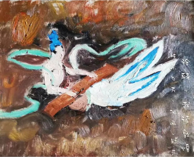 他追寻更为生动的艺术语言,不构筑辉煌的奇迹(因为在风沙在线所有的辉煌都是平易的,而平凡的小事小景却常常打动人心,比如:骆驼、飞鸟、还有水)。郑兵在阅读石窟壁画中发现过极其非凡的唐朝工匠人生活的小写画,看着这些线条粗乱而有致,构图散漫而神泅的艺术,郑兵彷佛听到了先祖们所要告诉他的话,这些话不是用语言能表达清楚的,这些话是讲给感知听的,这些话给了郑兵绘画艺术一个更为博大的天地。早在很多年以前敦煌的沙石和工匠就把这些话讲给了名叫张大千、赵望云这样的画人,,离开敦煌多么远、多么久,他们也没敢把那些话忘掉,走遍了全世界,他们也没有敢把敦煌忘掉。