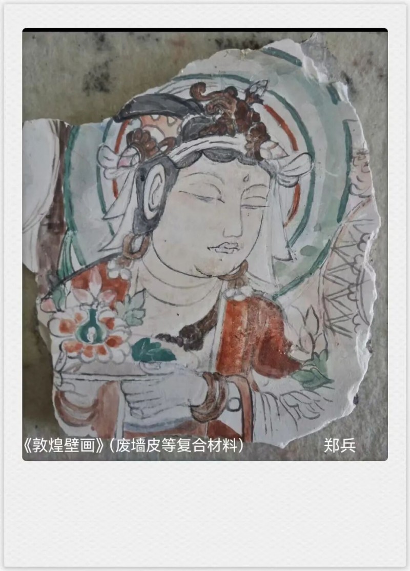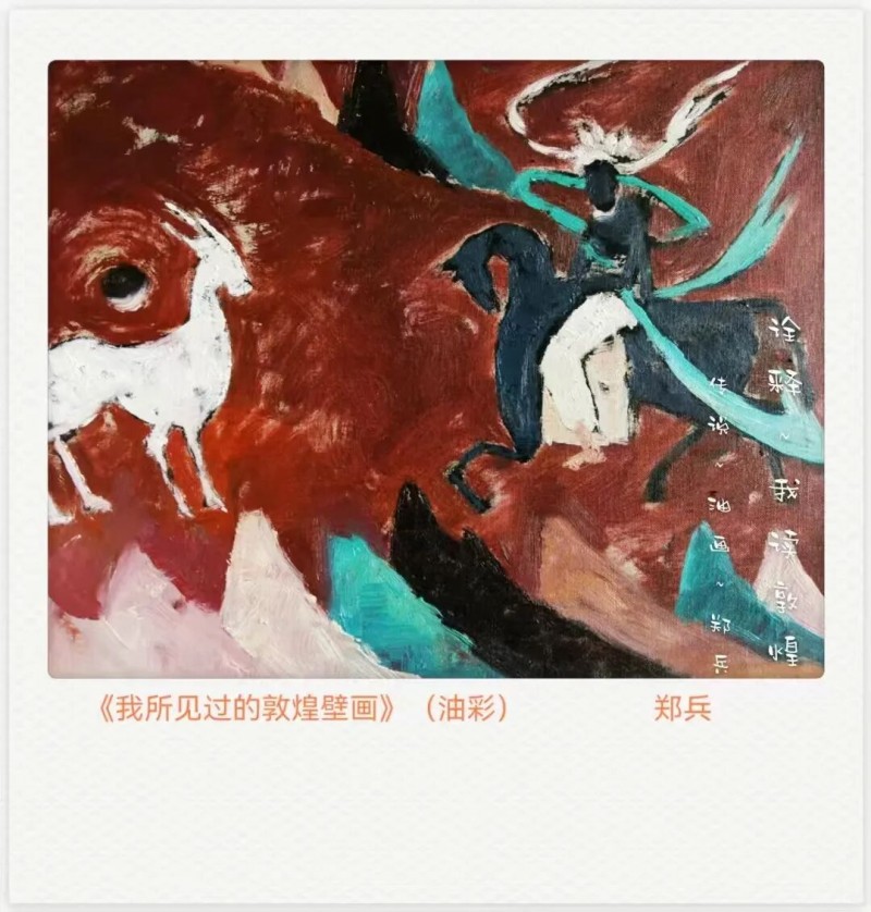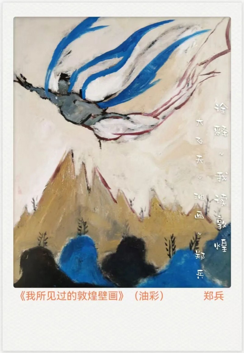 郑兵,是科班出身的油画家。几年前我深深被他选入《当代中国美术家》(光盘)的一幅大型油画作品《解读中国石窟艺术》所打动,这幅作品同时也打动了美术界的许多同行。郑兵没有把此次的成就高举过头,去享受成功的喜悦,而是默默地走出人堆,默默地走向荒凉的戈壁,走入石窟洞穴。
