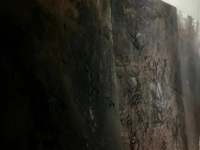 立于这些殇土绘成的巨幅画作之前,黑色的笔触浸染着艺术家蓬勃的情感,时间仿佛闪回到那些历史性时刻,面前不再是艺术作品,而是生命铸成的坟墓。展厅外的喧哗被消解了,世界变得安静、肃穆,艺术凝固了苦难与悲情。一滴水可以反映出太阳的光辉。杭法基能够在微小的事物中看到光亮,这是艺术家的感知力和洞察力。他的创作动力和热情,与修行者的超然、谦卑和克制交融,让两种能量在一个个体上共生。“殇土”是杭法基和世界的一次共创,对人类命运的关怀,让他走进了一个更辽阔的精神世界,他与自己共同回到了绘画本身。