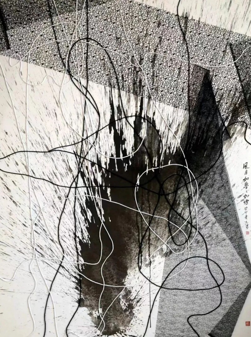 20世纪80年代起,杭法基陆续创作了“魔方”“书象”“抽象水墨文人画”“消解”等近10个系列的作品,创作形式涵盖绘画、装置。虽然以水墨闻名,但杭法基早已脱离水墨这个单一媒介。如果说“魔方”是对结构的探索,“书象”则是回到中国式书写本身,挖掘艺术家个体的直觉。
