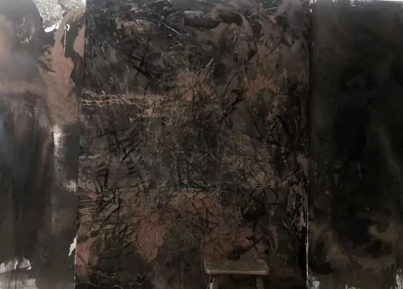 前几十年杭法基安于马鞍山生活,他的心始终沉迷于国内外艺术前沿的思考,由此造成被主流遗漏与忽视。回到北京之时,赫然已经成为当代艺术界的遗珠。在那个没有人理解他抽象水墨的小城生活,唯有创作上的“不安分”是他平淡生活中的乐趣。现在看到他重要的抽象实验水墨代表作,都是在马鞍山创作完成的,来北京后已完全进入“消解”这一当代艺术创作状态。“消解”系列源于对之前创作手法的厌倦,“殇土”则是一次偶然引发的心灵触动。2023年10月22日至11月21日,“殇土:杭法基作品展”在宋庄当代艺术文献馆展出,这是公众第一次真正看到杭法基酝酿数年的“殇土”。