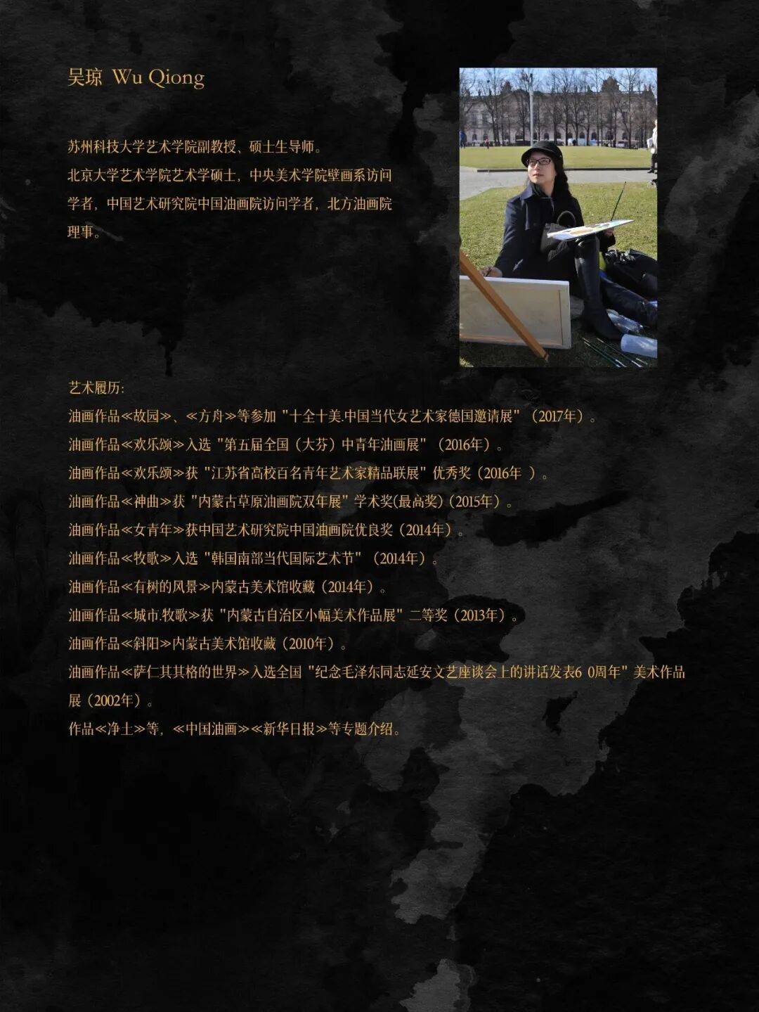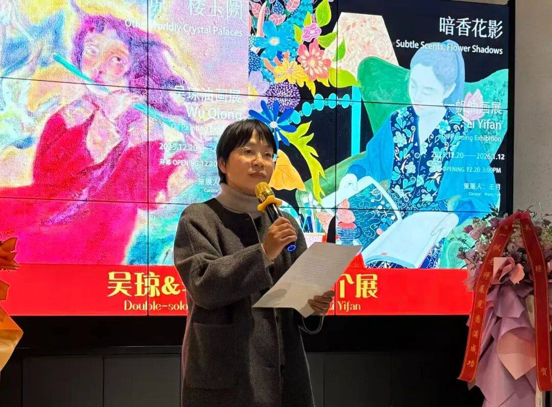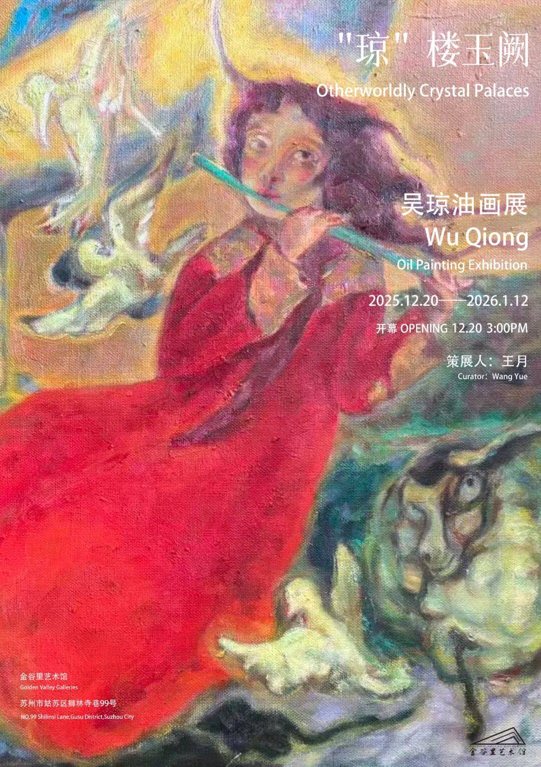 2025 年 12 月 20 日,由王月先生策展的“琼楼玉阙——吴琼油画展”在苏州平江路金谷里艺术馆开幕。展览集中呈现了艺术学院美术系副教授吴琼近年来创作的一系列人物与风景油画作品。作品以表现主义语言,构建了一个个融合东西方元素、交织梦幻与现实,既绚丽又神秘的童话寓言般的世界。