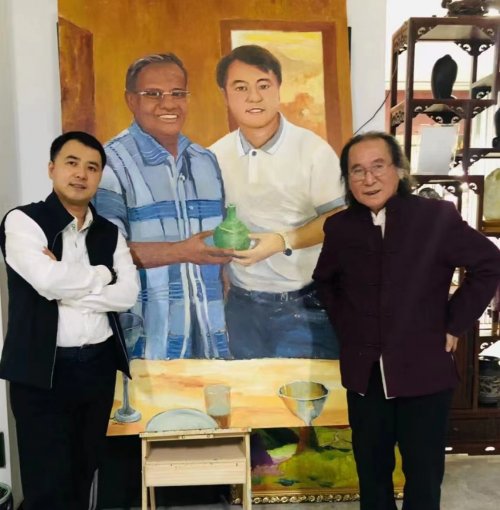 赵同振先生创作的油画,油画主人为《马尔代夫总统》与中国友人。