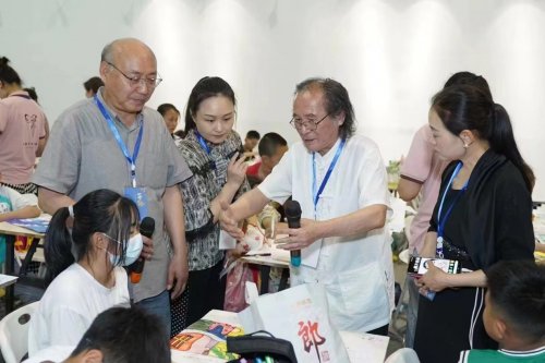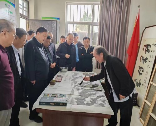 赵同振参加陕西省渭南市澄城县庄头镇宋家庄诗书画158幅作品捐赠现场创作留影,陕西省人大原副主任、慈善协会会长吴前进等观赏