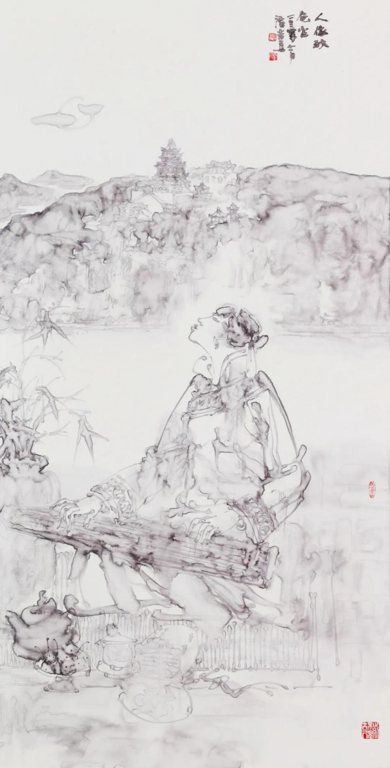 《花非花》136×68厘米 纸本水墨 2020年