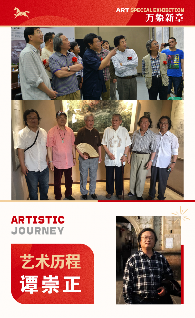 谭崇正 湖北省国画院副院长,湖北大学中国画研究所所长、艺术学院教授、硕士生导师。湖北省中国画学会副会长,湖北开明画院副院长,湖北书画院院士,《中国书画》杂志社书画院院聘画家,北京水墨行动组委会副主任,中国美术家协会会员。