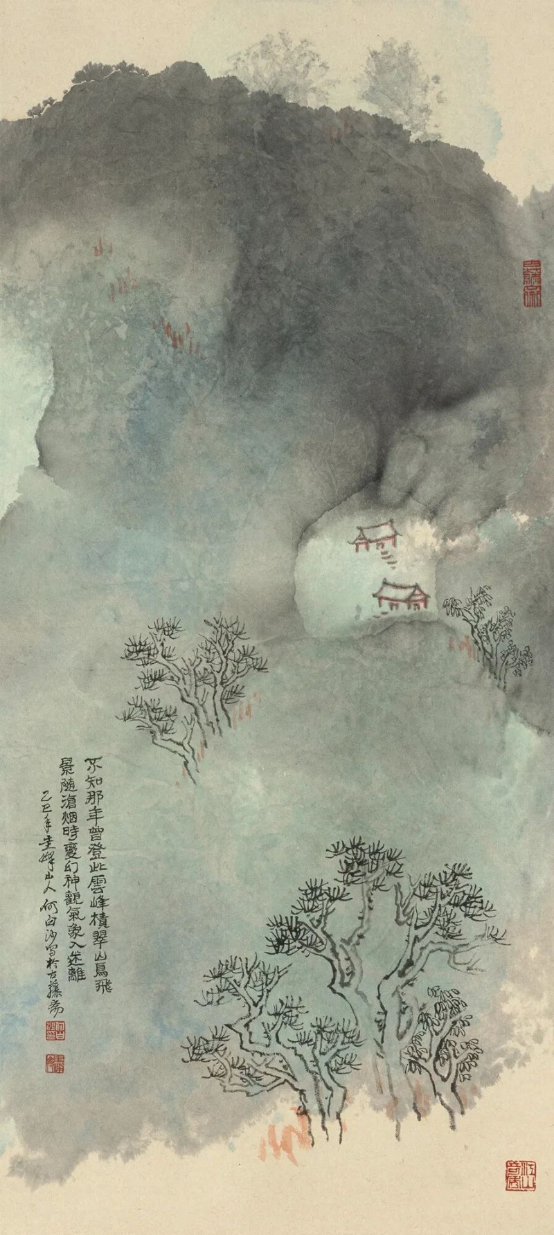 何白沙 《松风掩映渔舟隐》 106× 55cm