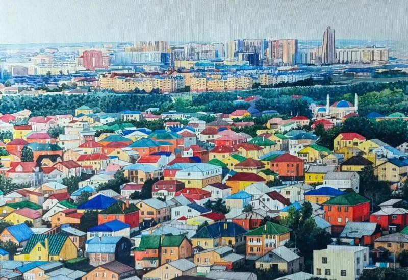 钢笔水彩《西域风情》100X70㎝,2024年
