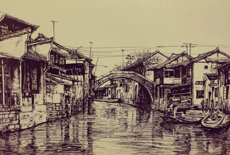 《水乡小镇》35X24㎝,2015年