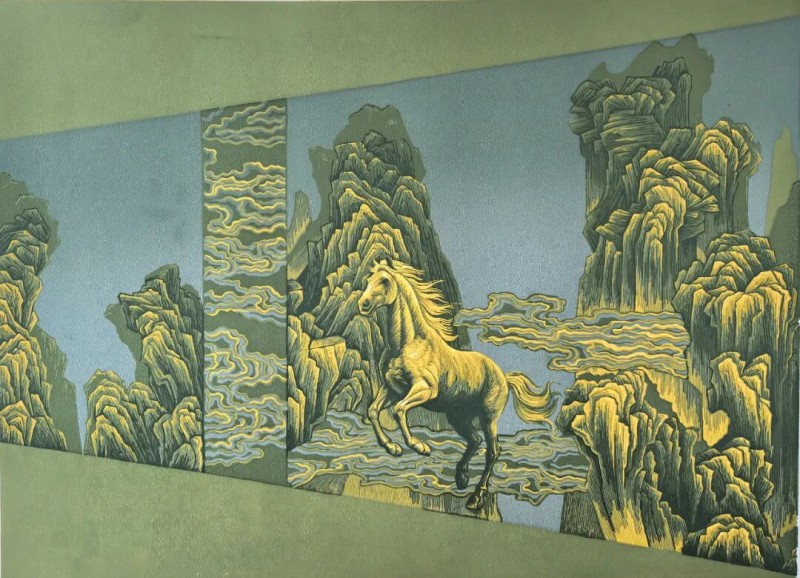 2017年,作品《乡津梦笛》《林间》《白崖寨》入选“锦绣中华”当代新徽派版画作品进京展(中国美术馆展出)