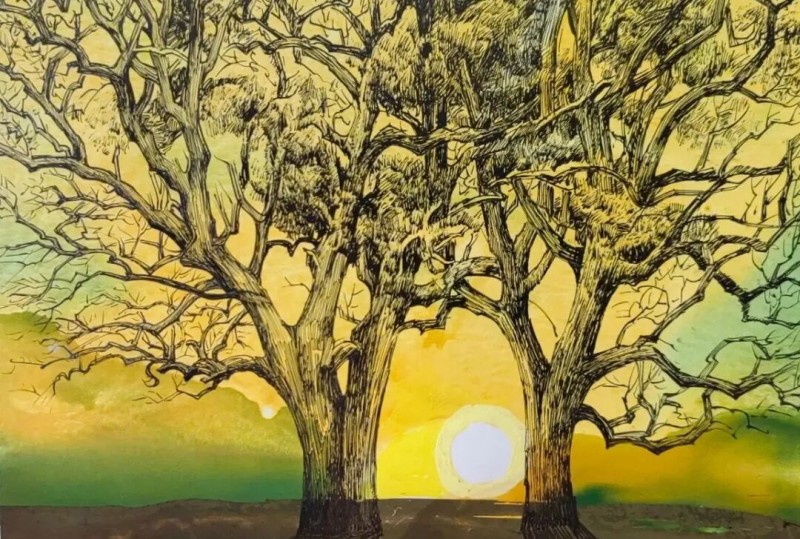 钢笔水彩《夕》42X30㎝2020年