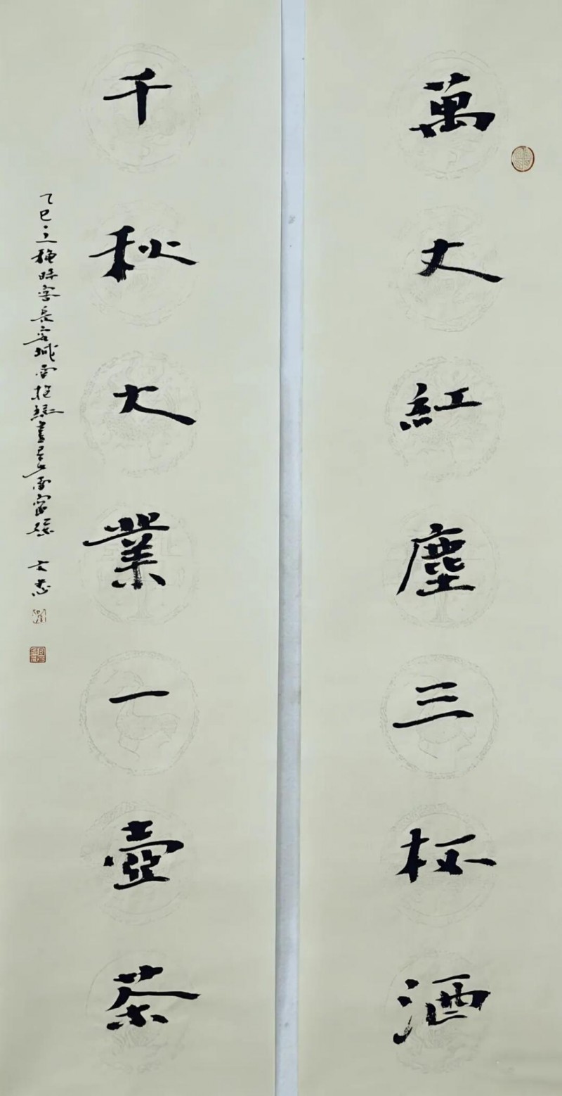 万丈红尘三杯酒 千秋大业一壶茶 138cmX34cm(X2)